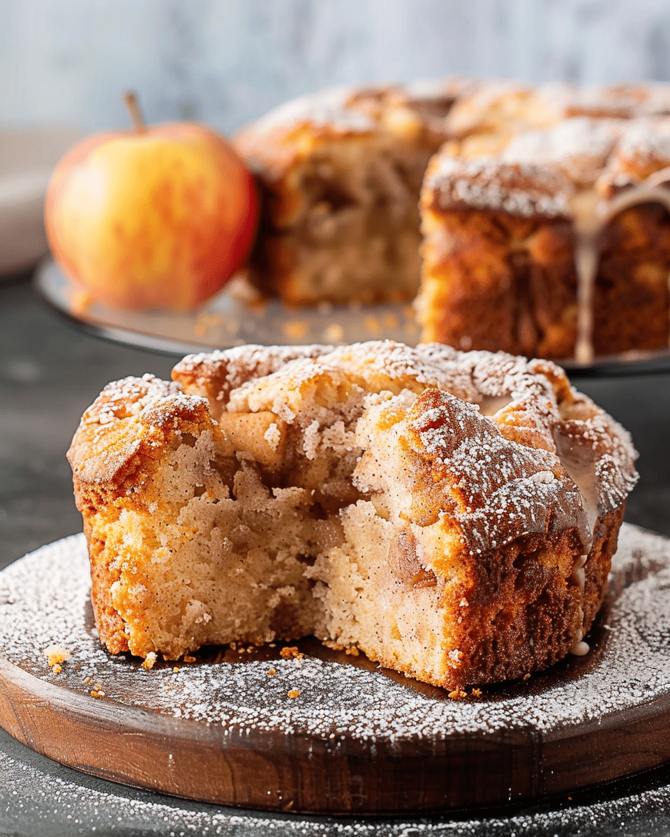 This soft, buttery coffee cake is layered with spiced apples and brown sugar crumble, then finished with a sweet glaze. Perfect for cozy mornings or holiday brunch.