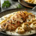 Asiago tortellini Alfredo with grilled chicken is a creamy, cheesy, and irresistibly flavorful dish that always impresses. I love how the tender tortellini and smooth Alfredo sauce pair perfectly with the crispy breadcrumb topping and juicy chicken. Whether I’m serving it for a weeknight dinner or a special gathering, it’s a rich and comforting meal that always hits the spot.