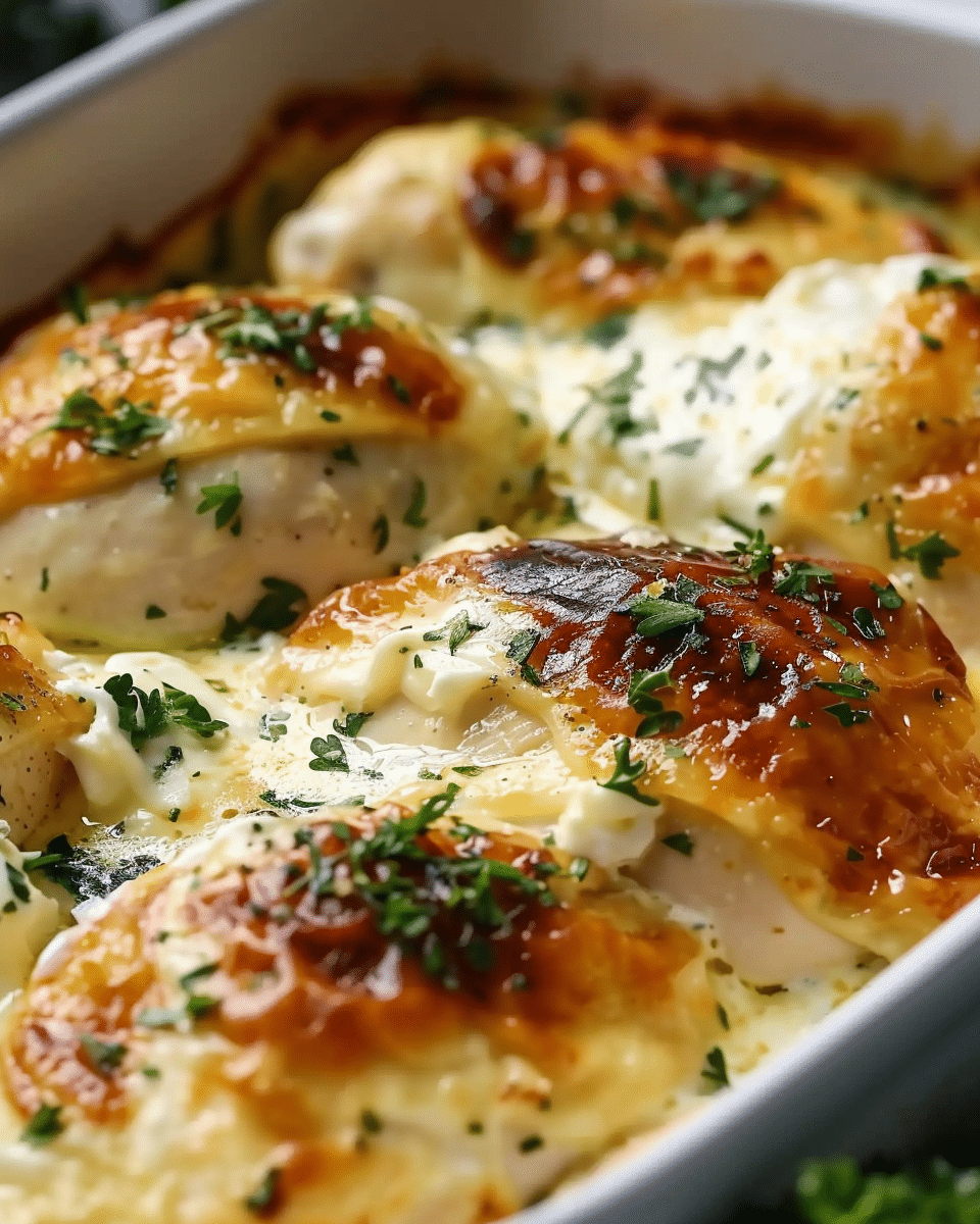 Once out of the oven, I let the chicken rest for 5 minutes before serving. This keeps it juicy and lets the creamy topping settle. I sprinkle on a bit of fresh parsley or chives for a final touch.