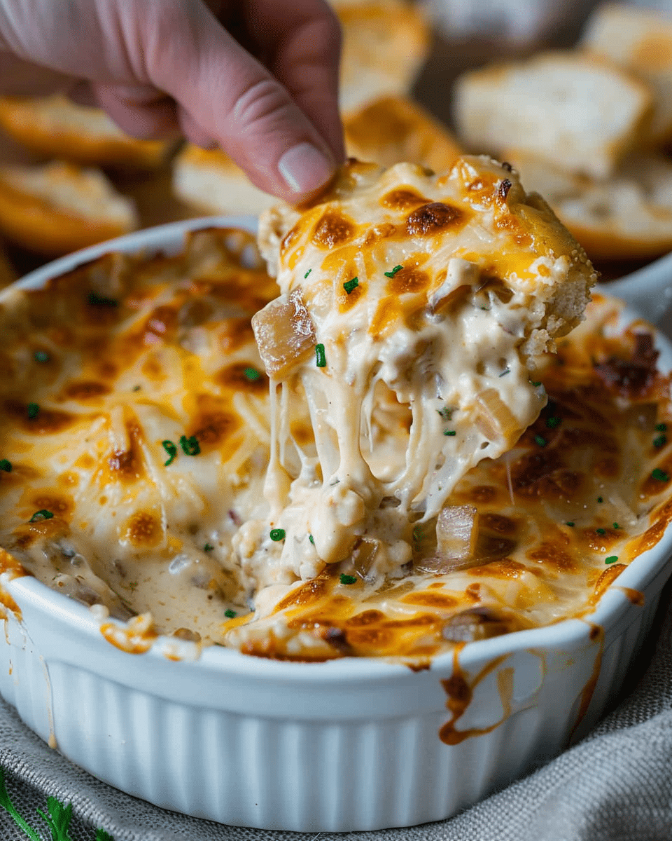 This rich and creamy baked dip is packed with caramelized onions, melty cheese, and savory flavor. Perfect for parties, game day, or cozy snacking with chips or bread.