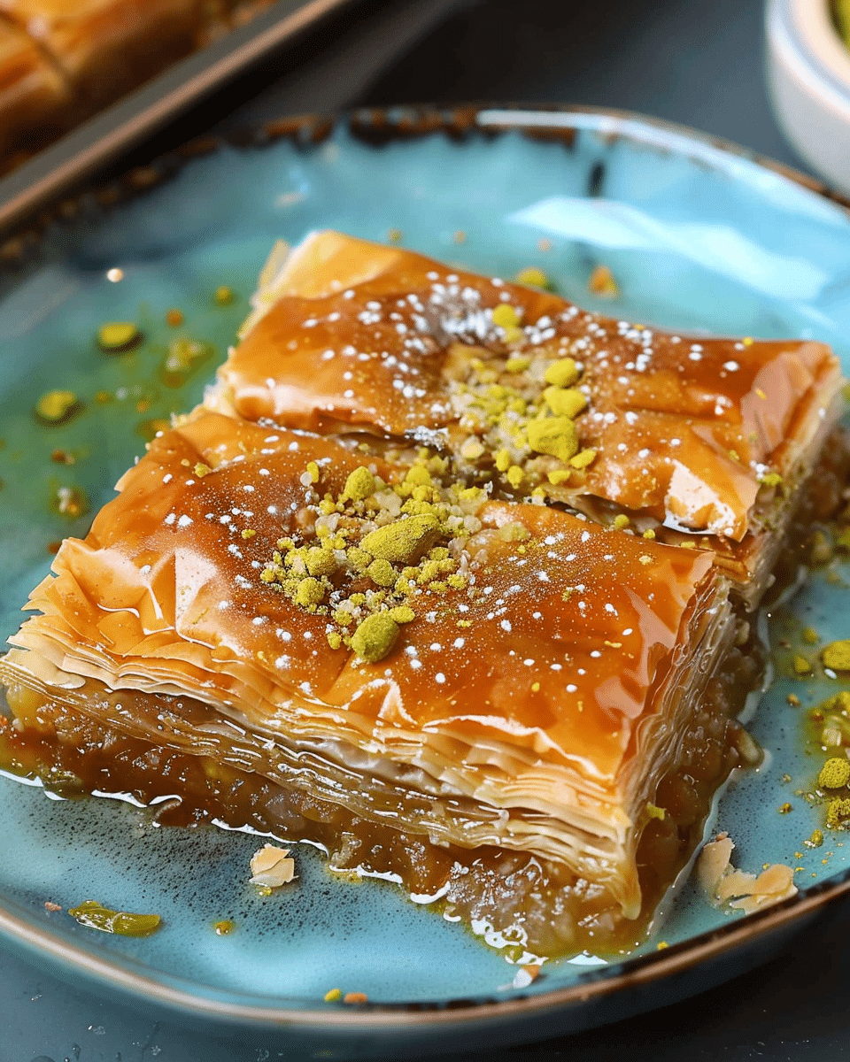 I love this baklava because it’s rich, sweet, and beautifully layered. The crisp phyllo contrasts perfectly with the soft, nutty center and the syrup that soaks into each layer without making it soggy. I can make it ahead of time, which is perfect for entertaining, and the syrupy aroma as it bakes fills my kitchen with warmth. It’s also surprisingly simple to assemble once I get into the rhythm of the layering—and I always enjoy watching people light up when they take a bite.