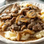 Beef and Mushrooms with Smashed Potatoes is the kind of cozy, satisfying dish that brings back memories while still feeling modern and fresh. With its rich, savory sauce and creamy mashed potatoes, it’s a complete meal that comes together fast and delivers big on comfort. Whether I’m cooking for family or just myself, this dish always hits the spot.