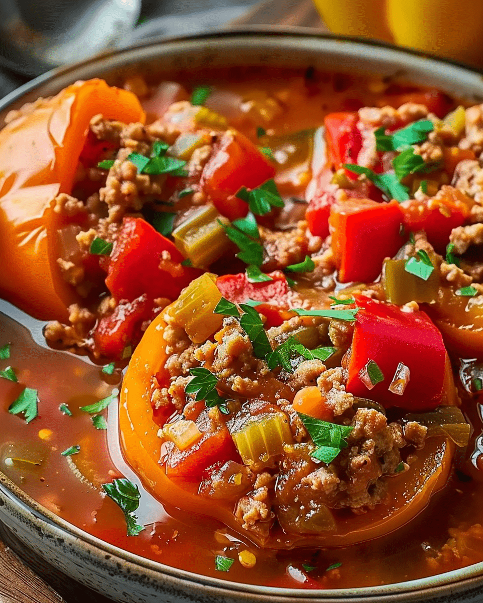 Bell Pepper Soup with Ground Turkey is a hearty, healthy one-pot meal made with colorful peppers, lean turkey, rice, and a tomato-based broth. Perfect for cozy nights and meal prep alike.