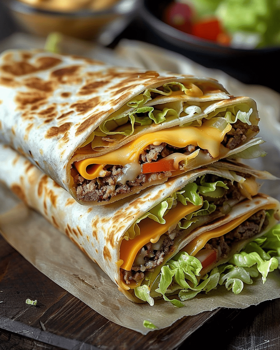 I love how fast and flavorful this recipe is. It brings all the nostalgic flavors of a Big Mac but with less fuss—and no drive-thru required. The wraps are easy to assemble, fun to eat, and endlessly customizable. I often sear them in a hot skillet to get that crisp, golden finish, but they’re just as good served cold for a grab-and-go lunch.
