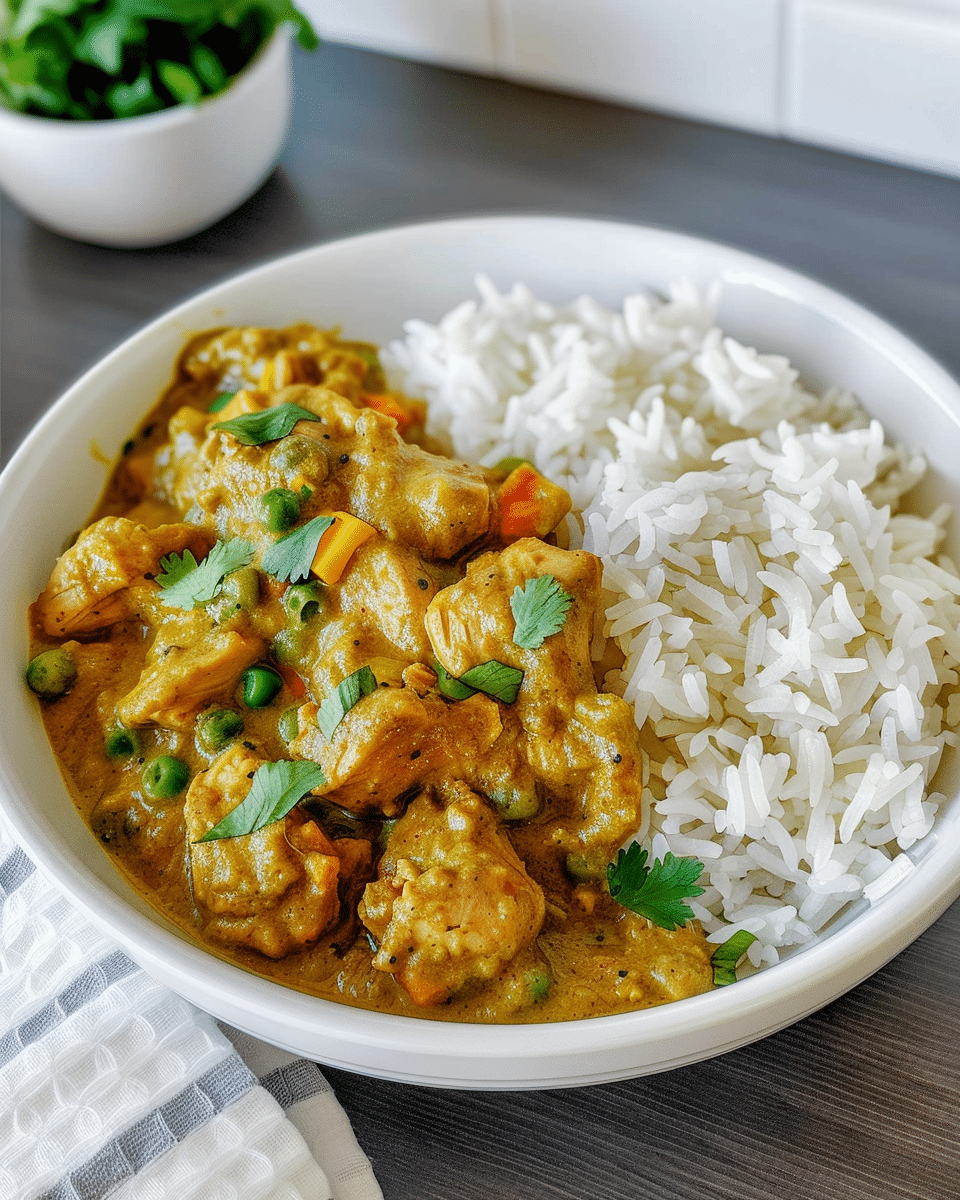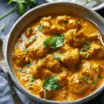 This creamy Chicken Korma recipe is rich with Indian spices, tender chicken, and a coconut yogurt sauce. Serve over rice for a flavorful, comforting dinner.