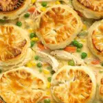 This creamy chicken pot pie casserole is pure comfort food—tender chicken, hearty veggies, and buttery golden biscuits baked to perfection for an easy family dinner.