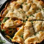Puff pastry adds that classic pot pie feel, but I’ve also used pie crust, crescent dough, or biscuit dough on top with great results.