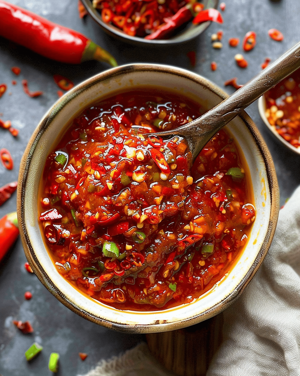 Bold, fiery, and packed with aromatics, this homemade Chinese chili sauce delivers restaurant-style flavor in just 20 minutes—perfect for noodles, dumplings, and stir-fries.