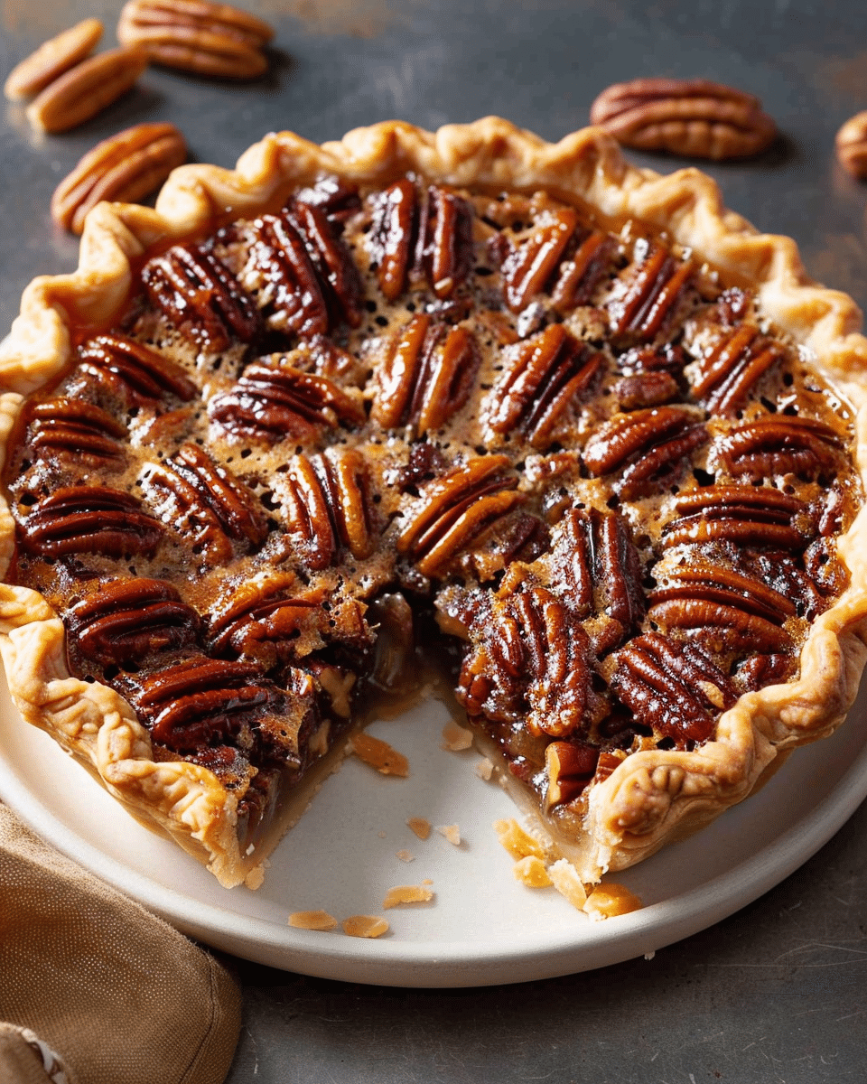 Rich, gooey, and loaded with pecans, this timeless pecan pie features a perfectly crisp crust and a sweet, buttery filling that’s perfect for the holidays or any special dessert.