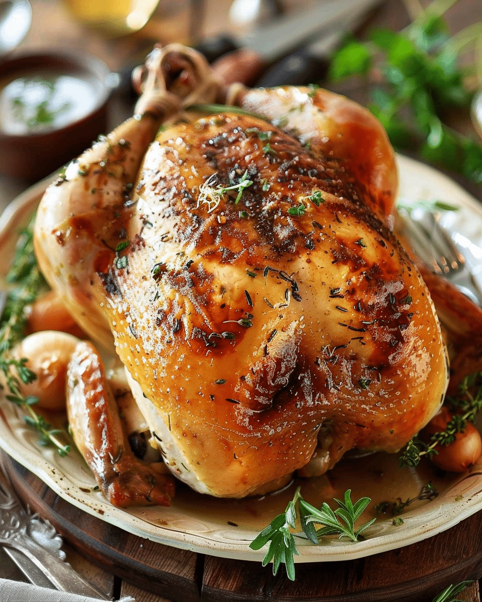 This classic roast chicken recipe is the ultimate comfort food, featuring crispy golden skin, juicy meat, and rich herb and lemon flavor. Perfect for Sunday dinners or family gatherings.
