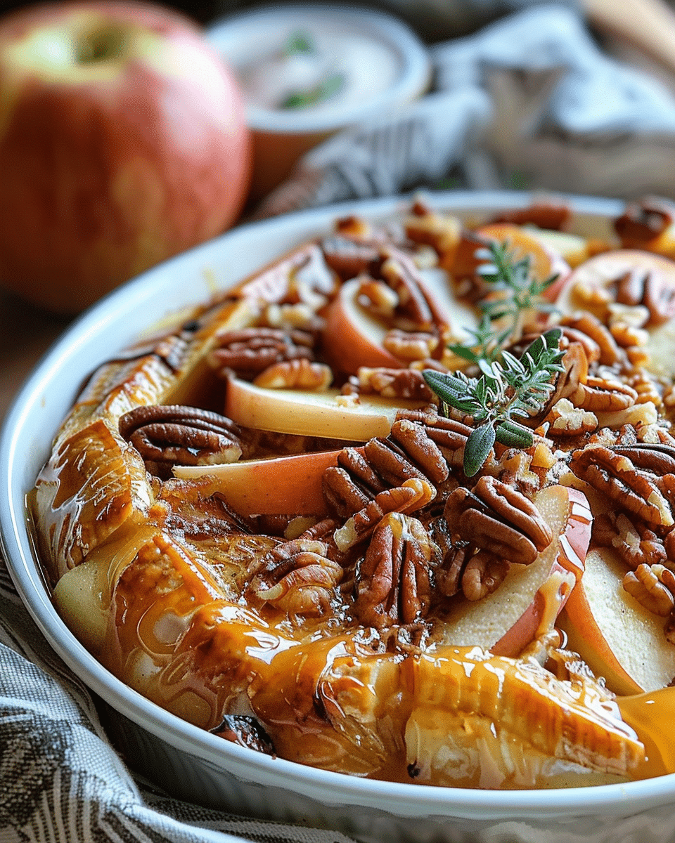 I love how this dish brings together the richness of baked brie with the warm sweetness of apples and a crunchy pecan topping. The textures are heavenly—from gooey cheese to soft fruit to crisp nuts. It’s also incredibly versatile. I can serve it with crackers, toasted baguette slices, or even spooned over roasted meats or sweet potatoes. Best of all, it’s a one-dish recipe that comes together quickly and fills the kitchen with the most inviting aroma.