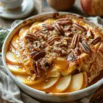 This cozy warm apple pecan brie casserole is everything I want in a fall or winter comfort dish—melty cheese, caramelized fruit, and toasty nuts all baked into one irresistible bite. Whether I’m sharing it with guests or just curling up with a plate and a blanket, it brings warmth and flavor to any moment.