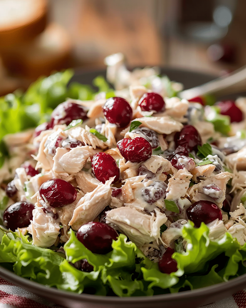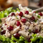 A refreshing mix of shredded chicken, sweet cranberries, crunchy walnuts, and creamy dressing—perfect for sandwiches, wraps, or serving on crisp lettuce.