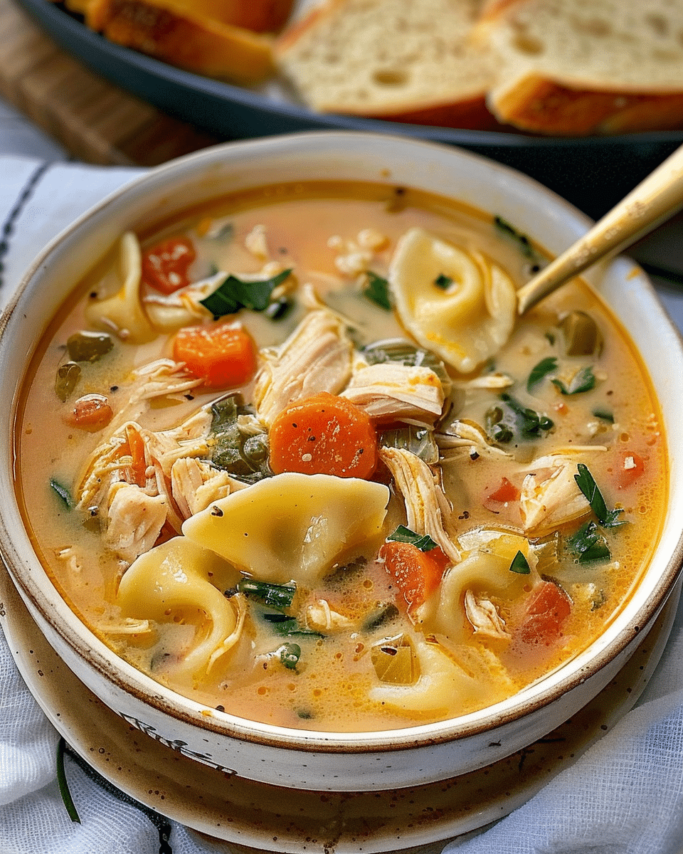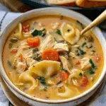 This rich and comforting soup blends tender chicken, Tuscan veggies, and a velvety cream sauce with pasta and parmesan. A cozy one-pot meal perfect for cold nights and weeknight dinners.