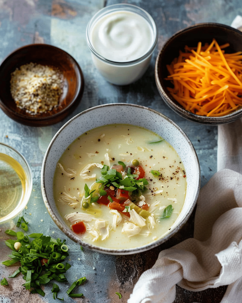 This rich and comforting soup blends tender chicken, Tuscan veggies, and a velvety cream sauce with pasta and parmesan. A cozy one-pot meal perfect for cold nights and weeknight dinners.