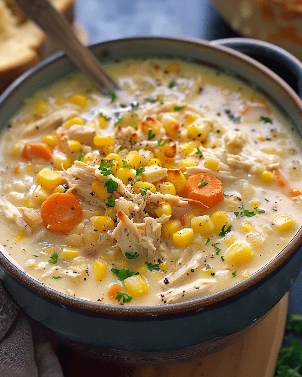 I love this recipe because it’s incredibly low-effort but delivers big on flavor. The slow cooker does most of the work while the ingredients have hours to blend and build that classic chowder richness. The chicken stays juicy, the potatoes get perfectly tender, and the sweet corn brings just the right contrast. Plus, with the creamy roux stirred in at the end, the texture becomes thick, smooth, and absolutely irresistible. It’s a complete meal that’s satisfying on its own or great with some warm bread.