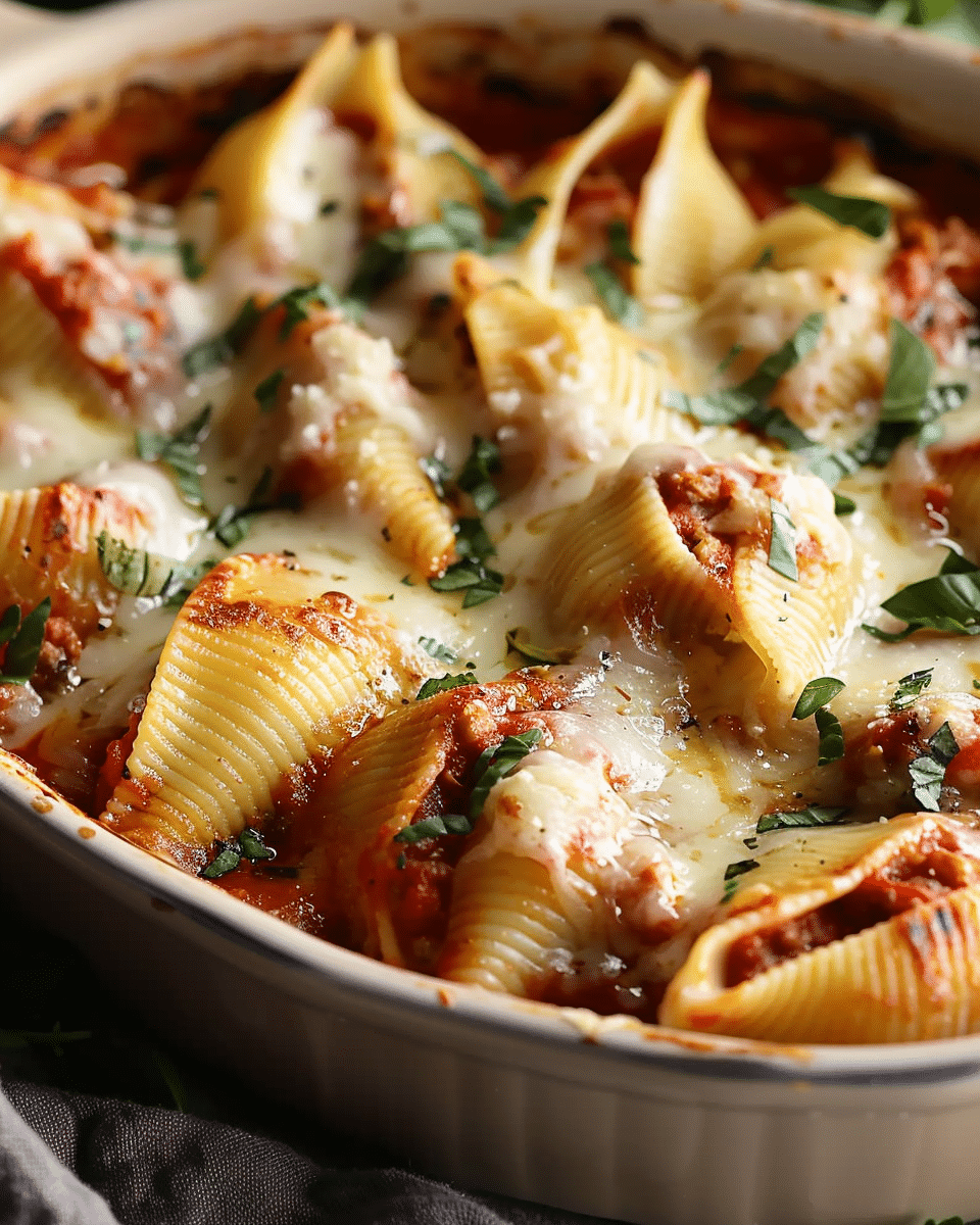 Tender pasta shells filled with creamy ricotta, fresh basil, and melty cheeses, baked in marinara for a cozy, crowd-pleasing Italian dinner.