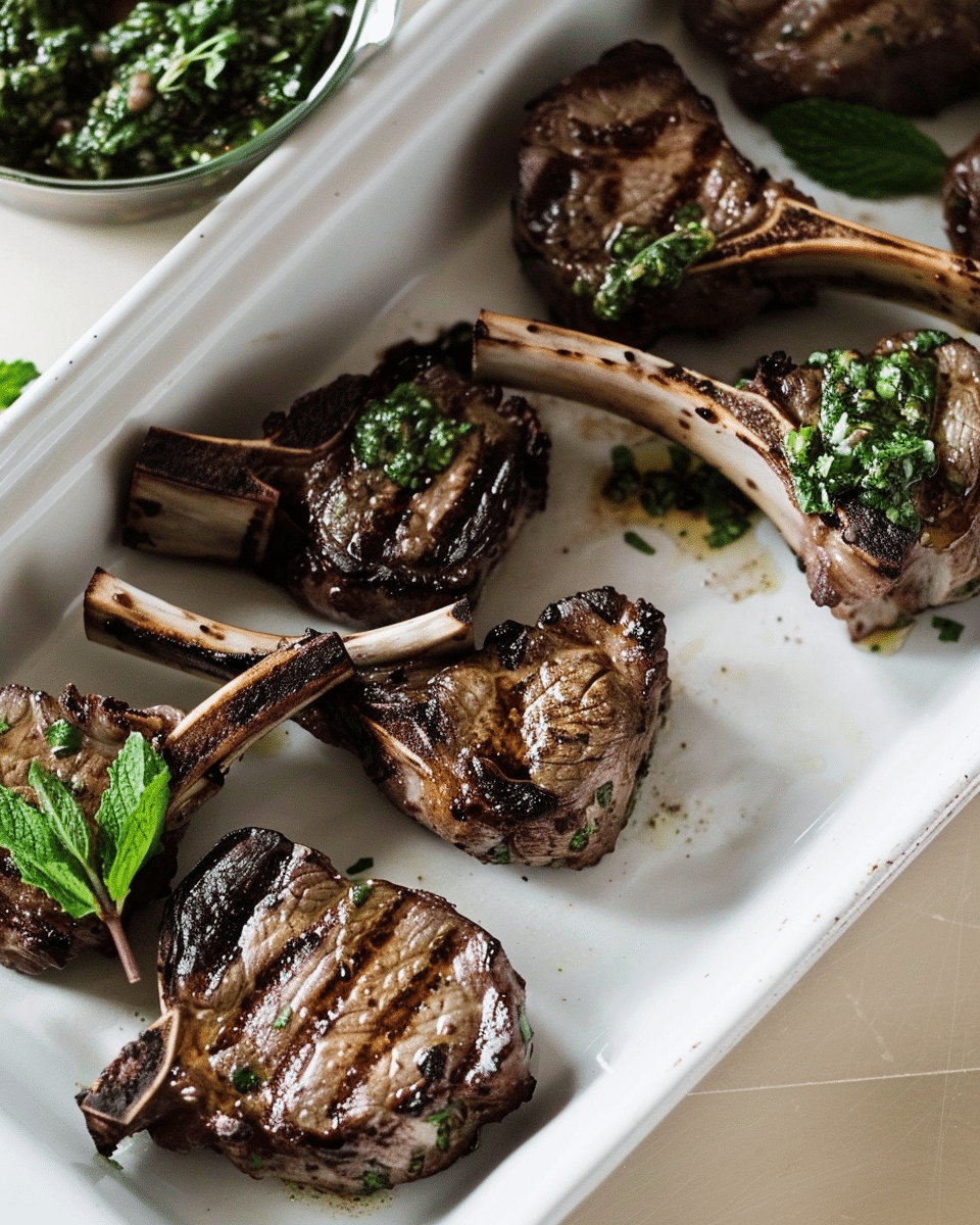 Serve lamb chops hot with generous spoonfuls of mint chimichurri.