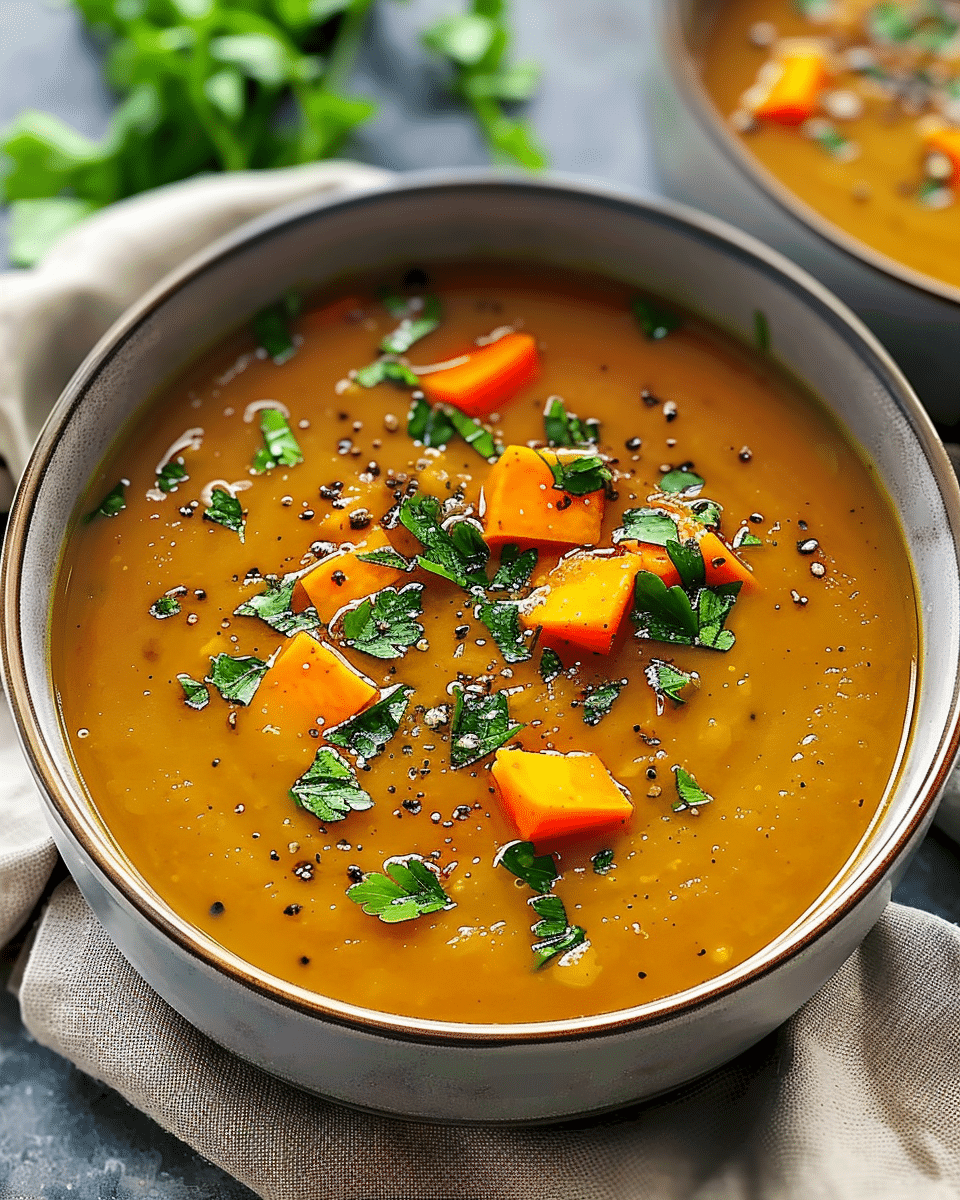 I love this soup for how quick and easy it is to throw together. It uses simple ingredients but gives back so much flavor, especially with a touch of warm spices like cumin, cinnamon, and chili. The creamy coconut milk makes it rich without being heavy, and the texture turns out velvety smooth every time. It’s also incredibly versatile—vegan, gluten-free, and easy to adapt based on what I have on hand.