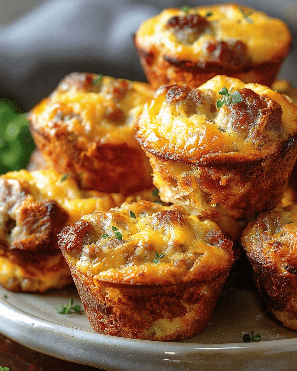 These protein-packed sausage muffins are made with eggs, Bisquick, and cheddar—perfect for grab-and-go mornings, meal prep, or a quick savory snack.