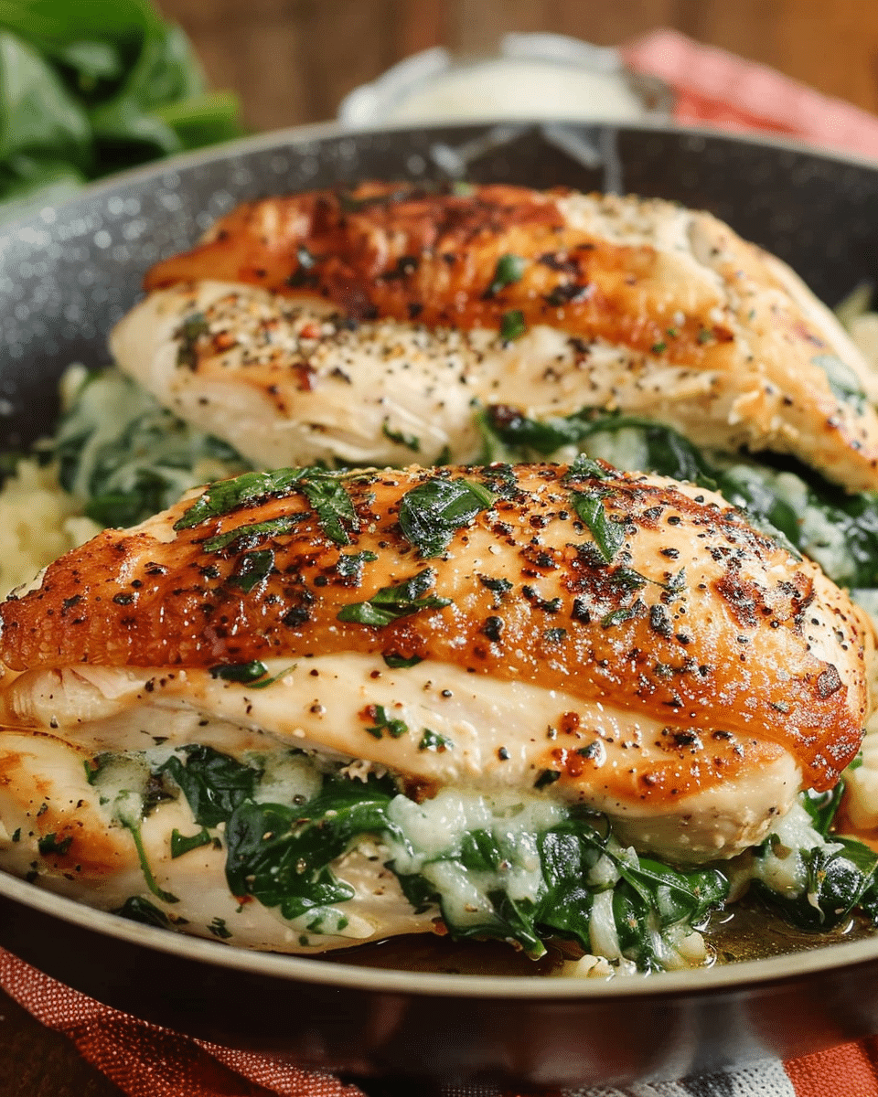 Juicy chicken breasts filled with a creamy spinach and cheese mixture—perfect for a flavorful, protein-packed dinner ready in under an hour.