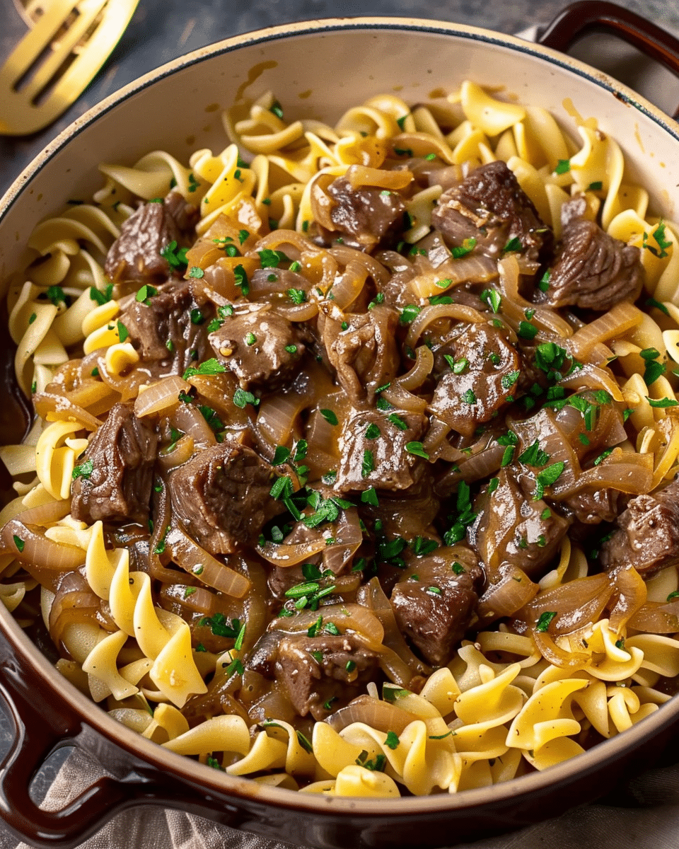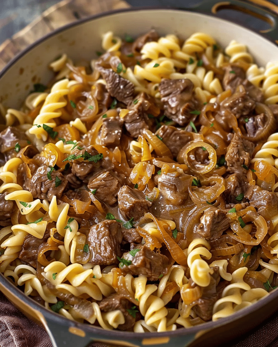 This cozy one-pot meal combines ground beef, egg noodles, and French onion soup for a rich, savory dinner that’s easy, creamy, and full of comfort.