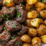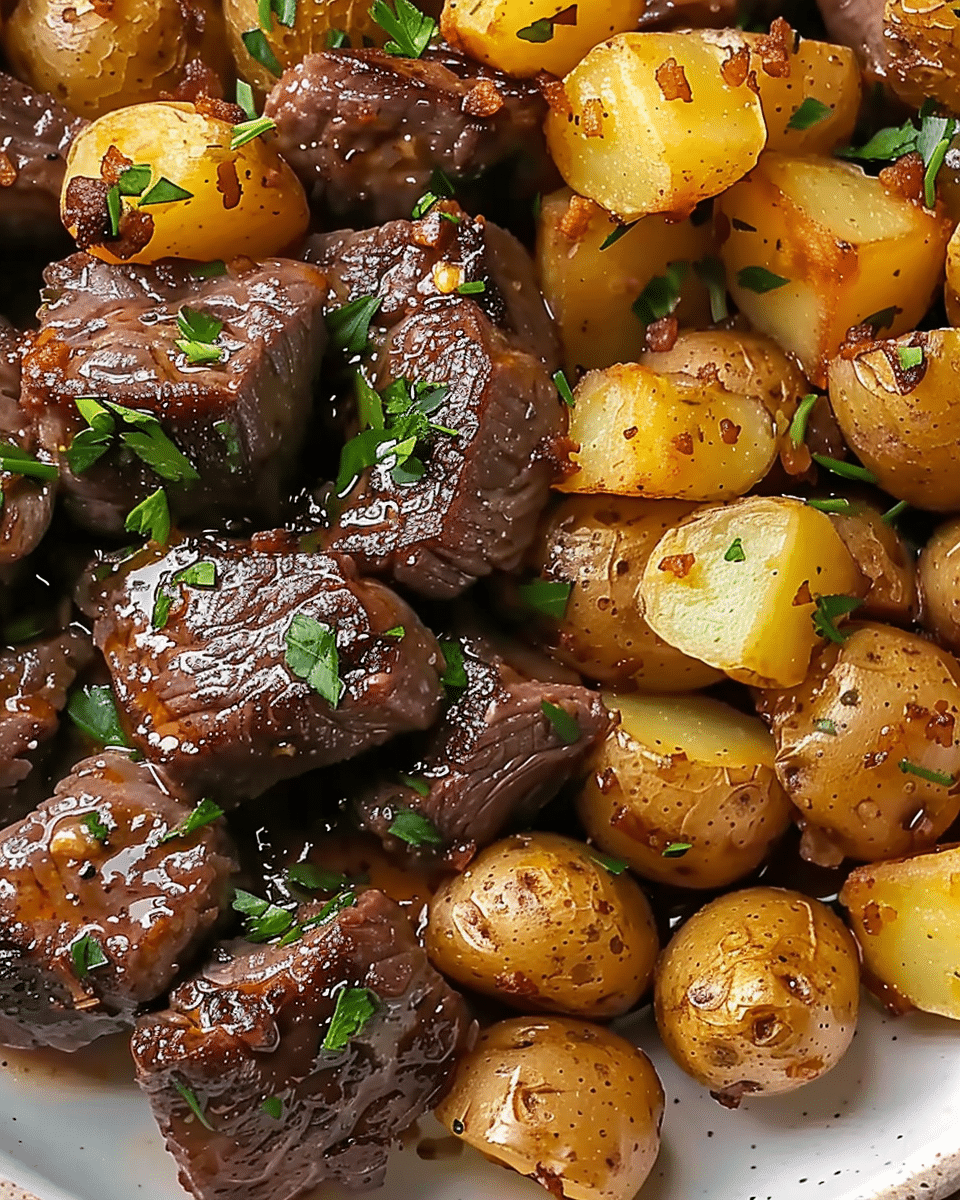 Juicy steak bites and crispy potatoes tossed in a rich garlic butter sauce—this one-pan recipe is tender, flavorful, and totally crave-worthy. Perfect for weeknights or dinner parties!