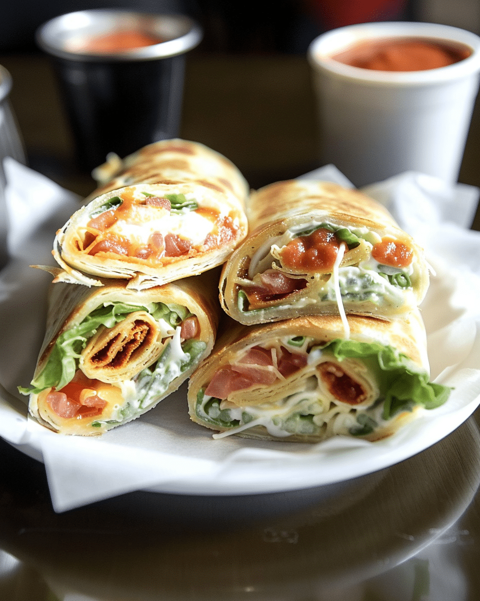 A flavorful twist on a classic BLT—these easy tortilla wraps are loaded with crispy bacon, juicy marinated tomatoes, fresh lettuce, and a tangy homemade sauce.
