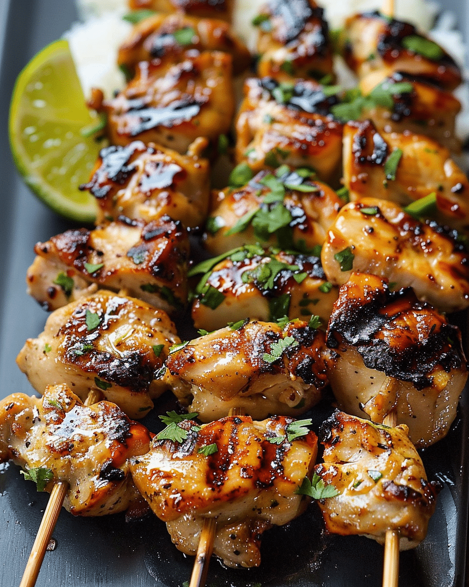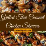 Juicy grilled chicken thighs marinated in coconut milk, lime, and Thai spices—these flavorful skewers are a must-try for summer grilling.