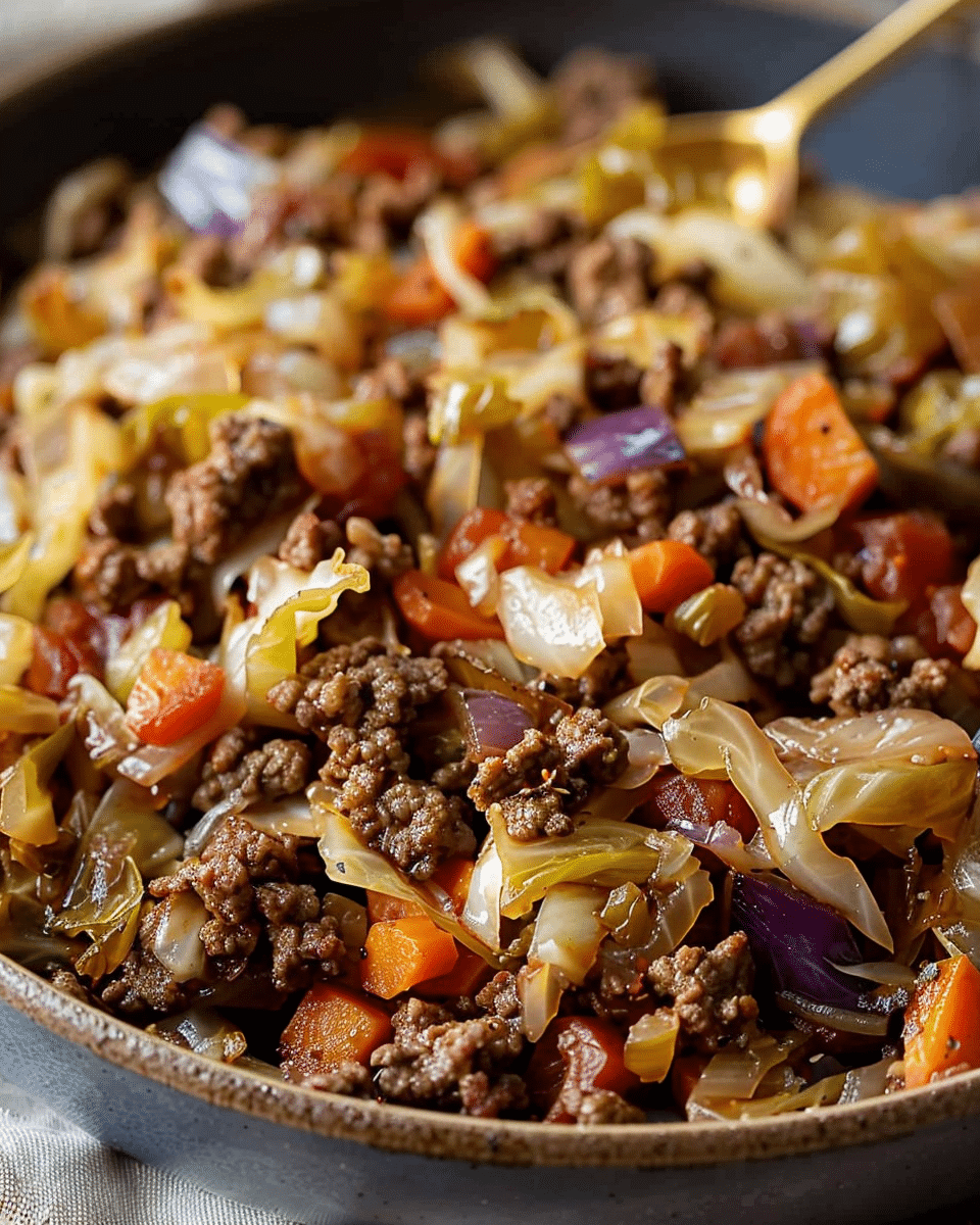 A hearty and budget-friendly one-pot meal made with seasoned ground beef, tender cabbage, and a rich tomato base. This easy dinner is perfect with rice or cornbread and great for feeding a crowd.