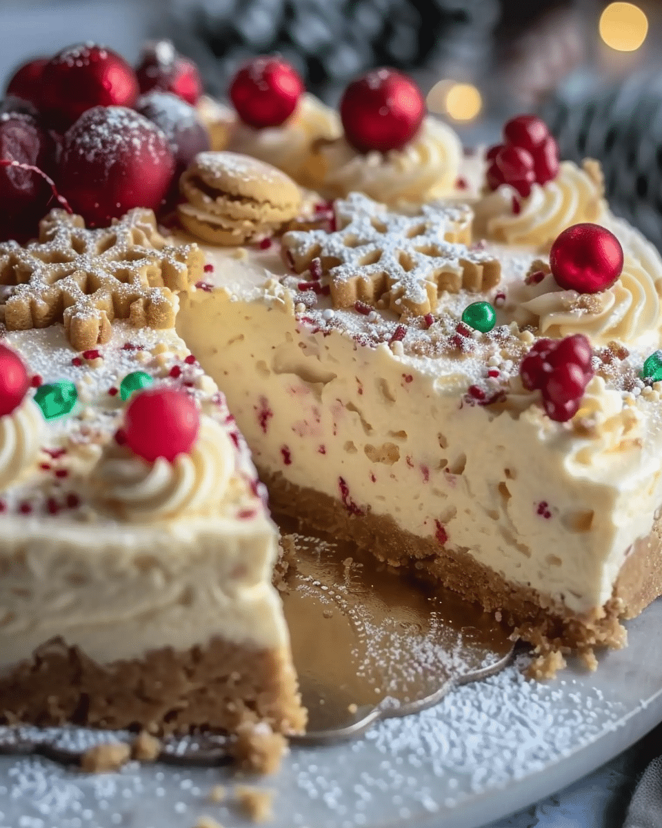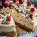 This festive cheesecake combines a sugar cookie crust with creamy vanilla-almond filling and holiday toppings. A dreamy Christmas dessert that’s as beautiful as it is delicious!