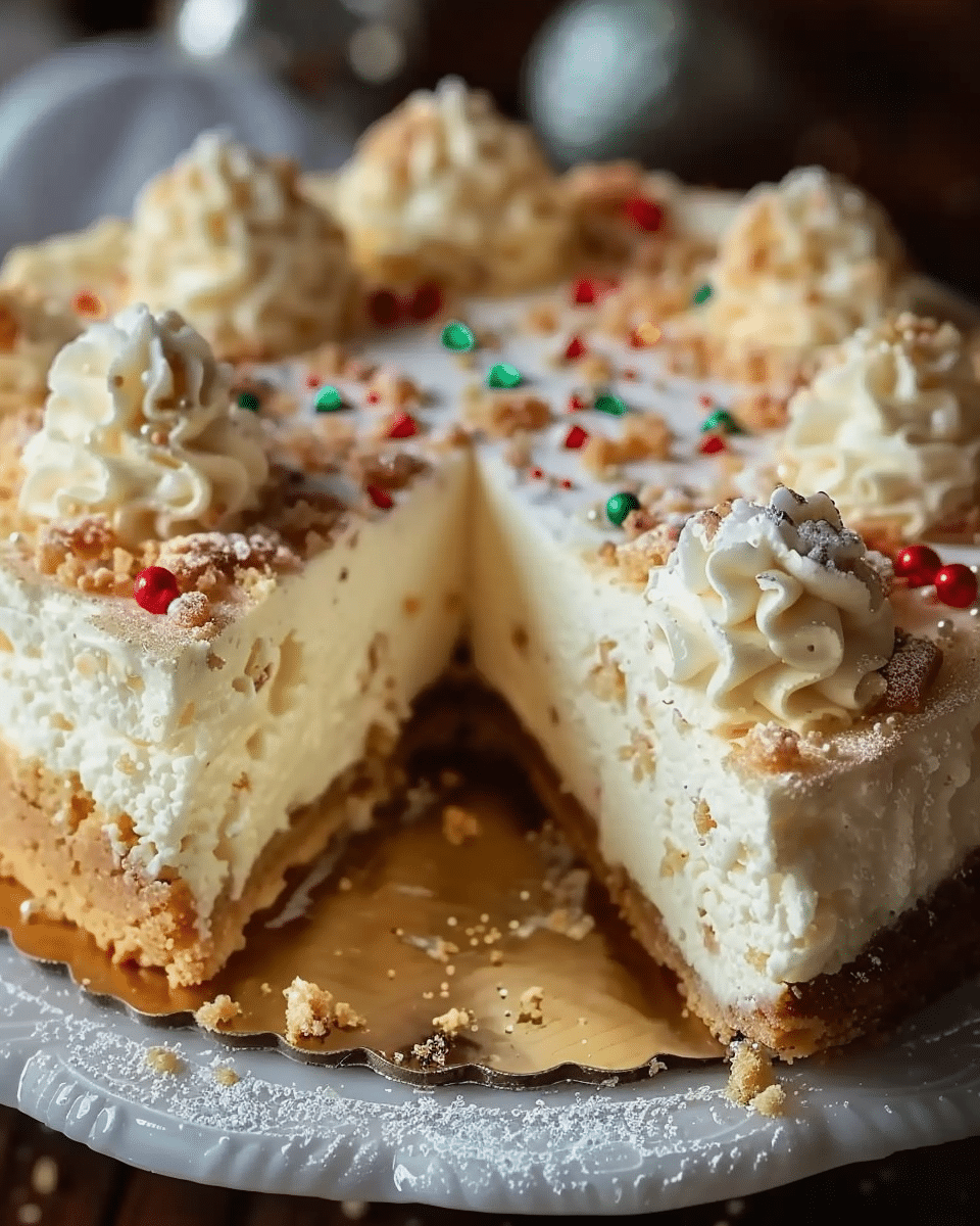 This festive cheesecake combines a sugar cookie crust with creamy vanilla-almond filling and holiday toppings. A dreamy Christmas dessert that’s as beautiful as it is delicious!