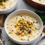 This homemade corn chowder recipe is the perfect cozy bowl—loaded with sweet corn, creamy potatoes, crispy bacon, and aromatic herbs. A comforting one-pot meal ideal for family dinners or chilly nights.