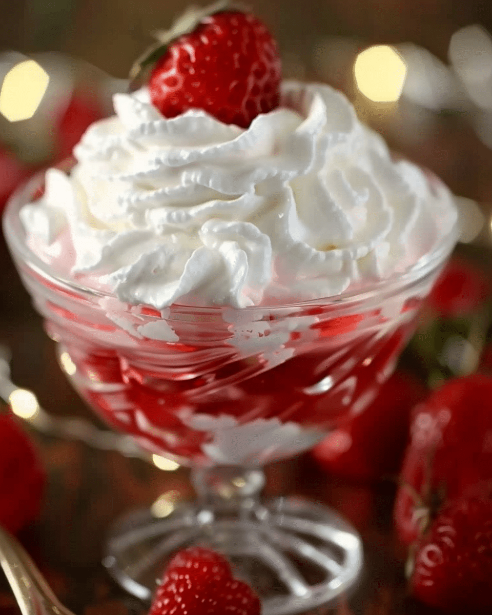 This light and fluffy no-bake dessert blends whipped cream and strawberry Jello for a fruity, creamy treat that’s ready in just 5 minutes.