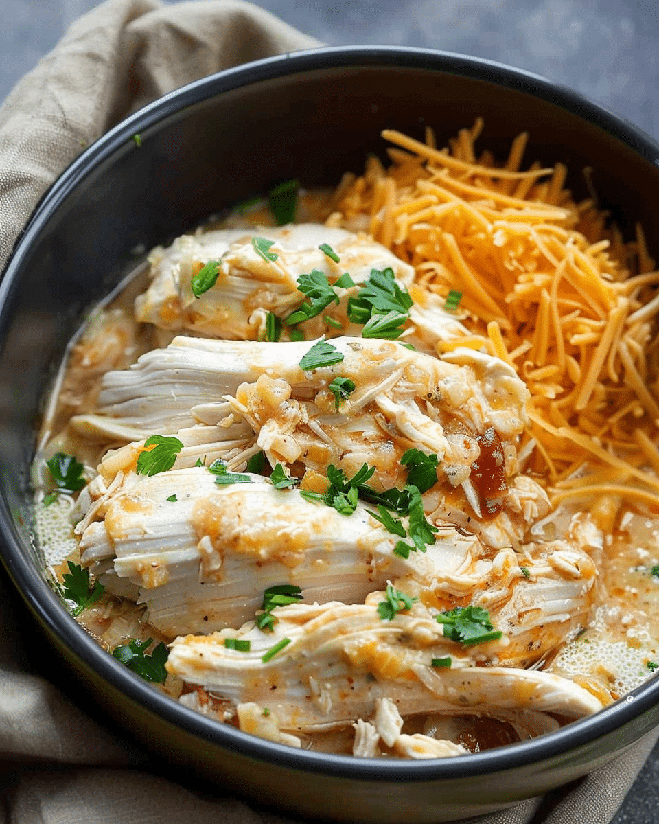 I love how ridiculously simple this recipe is. Just dump the ingredients in the slow cooker and let it do the work. The chicken turns out fall-apart tender, and the cream cheese melts into a rich, flavorful sauce. Bacon bits and cheddar give it that extra “crack” factor, while herbs add a fresh, savory layer. It’s incredibly versatile too—I serve it over cauliflower rice, in lettuce wraps, or even just on its own in a bowl when I want something rich and satisfying.