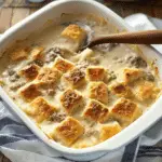 I like how simple and satisfying this casserole is. It takes the classic Southern combo of biscuits and gravy and turns it into an easy one-dish meal. The biscuits bake up golden and fluffy on top while the savory sausage and creamy gravy bubble underneath. It’s cozy, budget-friendly, and always a hit with both kids and adults. Plus, cleanup is a breeze.
