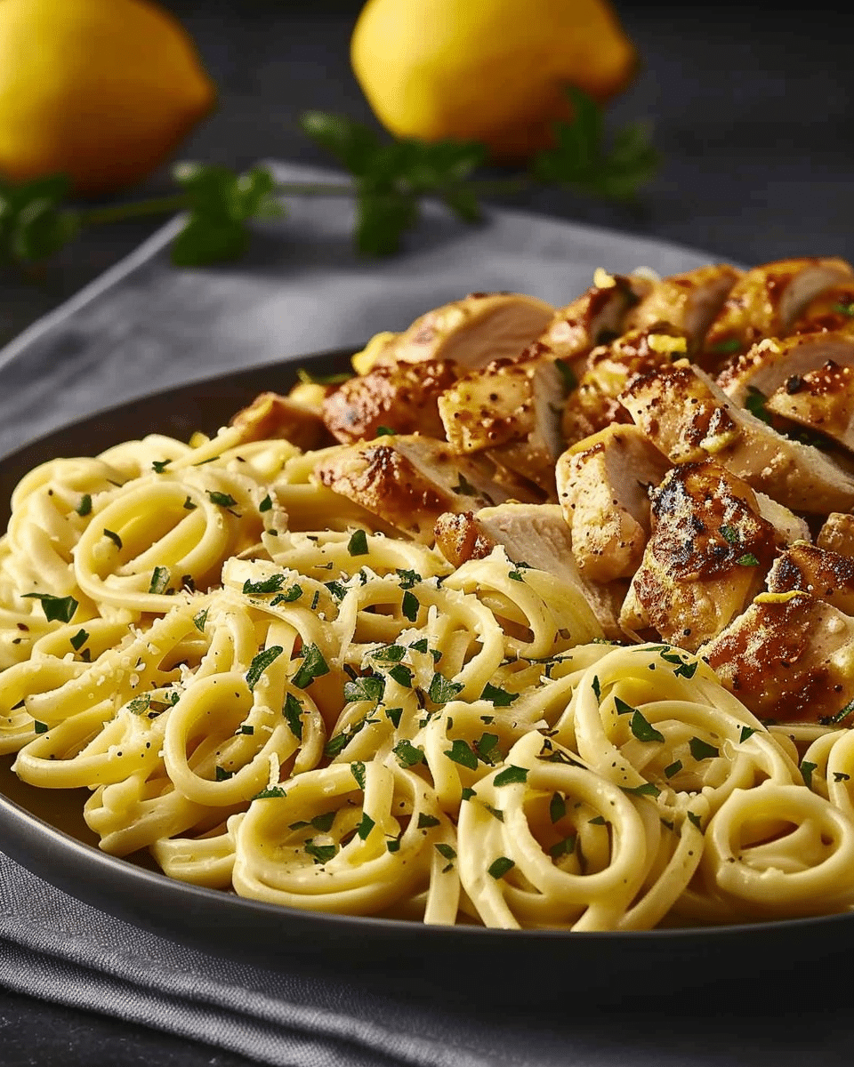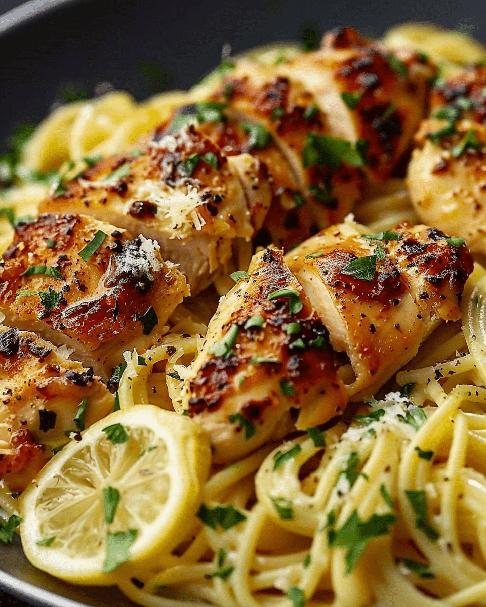 Juicy chicken meets a zesty lemon-garlic butter sauce and creamy Parmesan linguine in this easy, flavor-packed dinner you’ll want on repeat.