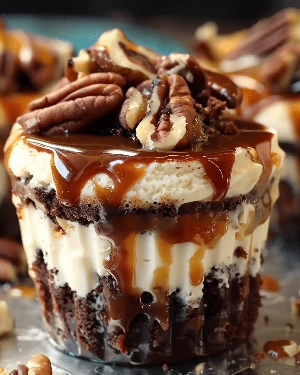 Loaded Caramel Pecan Brownie Cheesecake Cup