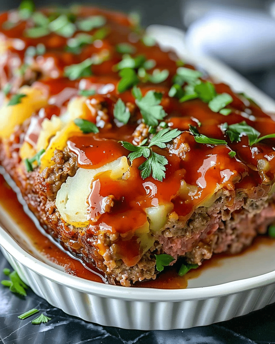 I sometimes add grated carrots or zucchini to the meatloaf for extra moisture. When I want more heat, I mix diced jalapeños or a splash of hot sauce into the potato filling. I also enjoy swapping cheddar for a blend of cheeses like mozzarella or Monterey Jack.