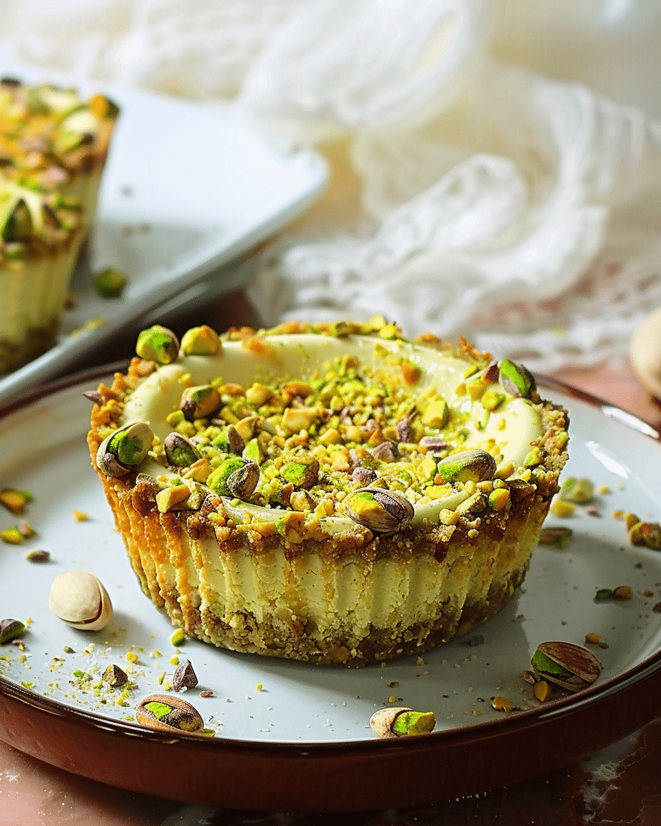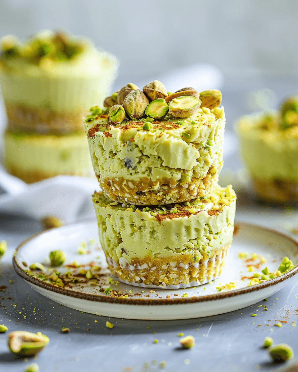 Creamy, nutty, and naturally gluten-free, these no bake mini pistachio cheesecakes are made with Greek yogurt and almond flour—perfect for parties or summer desserts.