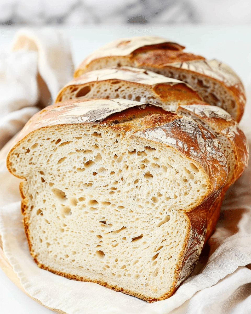 I store the bread wrapped in a clean kitchen towel or in a paper bag to keep the crust crisp. It stays fresh at room temperature for about 2 days. For longer storage, I wrap it tightly and freeze it—either whole or in slices. To reheat, I pop slices in the toaster or warm a whole loaf in a 350°F oven for 10–15 minutes.