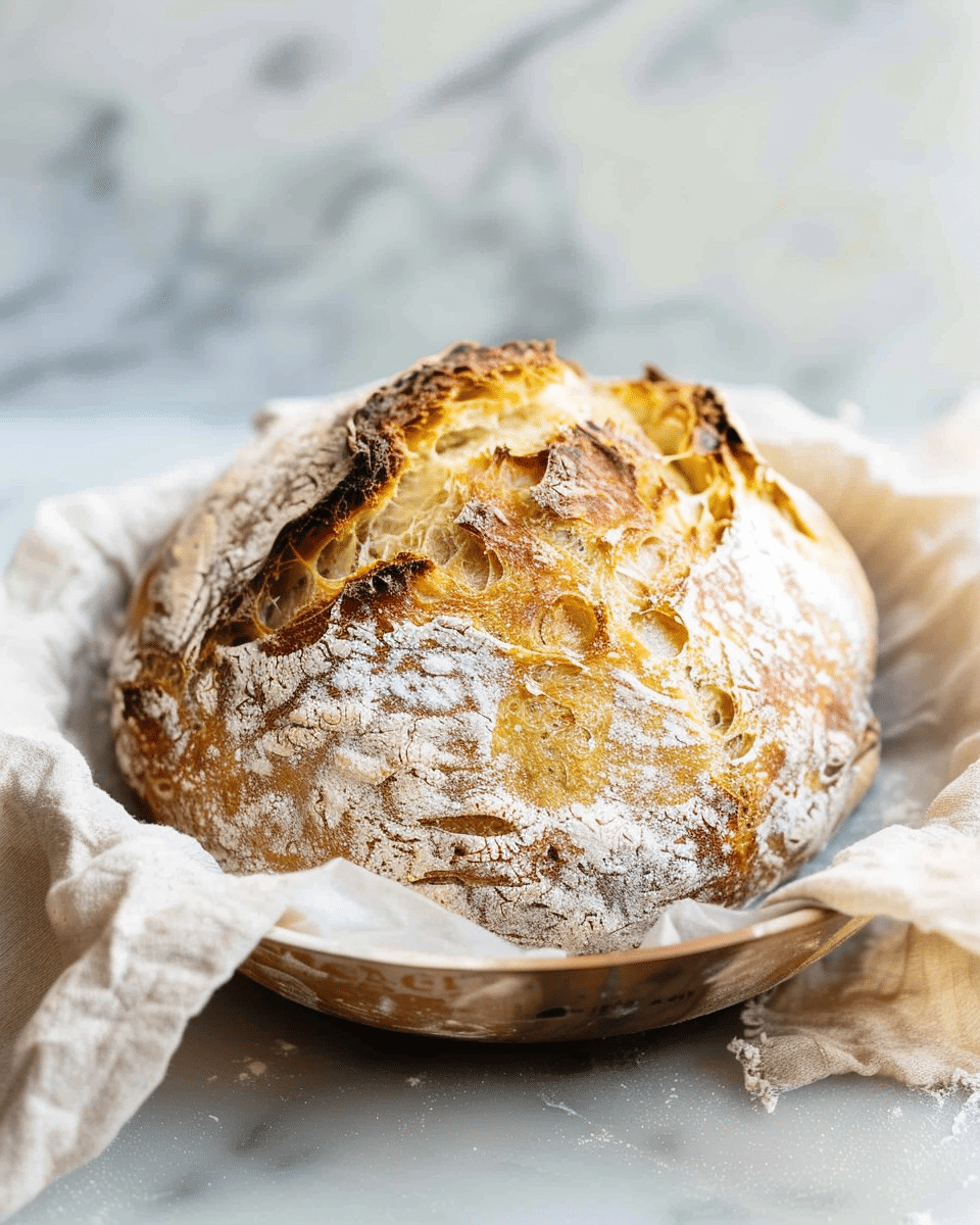 I love how forgiving and hands-off this recipe is. I mix the dough in one bowl with a spoon—no stand mixer, no dough hook, and definitely no kneading. Then I let time do all the work while I sleep or go about my day. What comes out of the oven is a gorgeous, bakery-quality loaf that looks like I spent hours on it. The crust is perfectly crisp, and the inside stays soft and full of flavor. It makes my kitchen smell amazing, and it always impresses anyone I share it with.