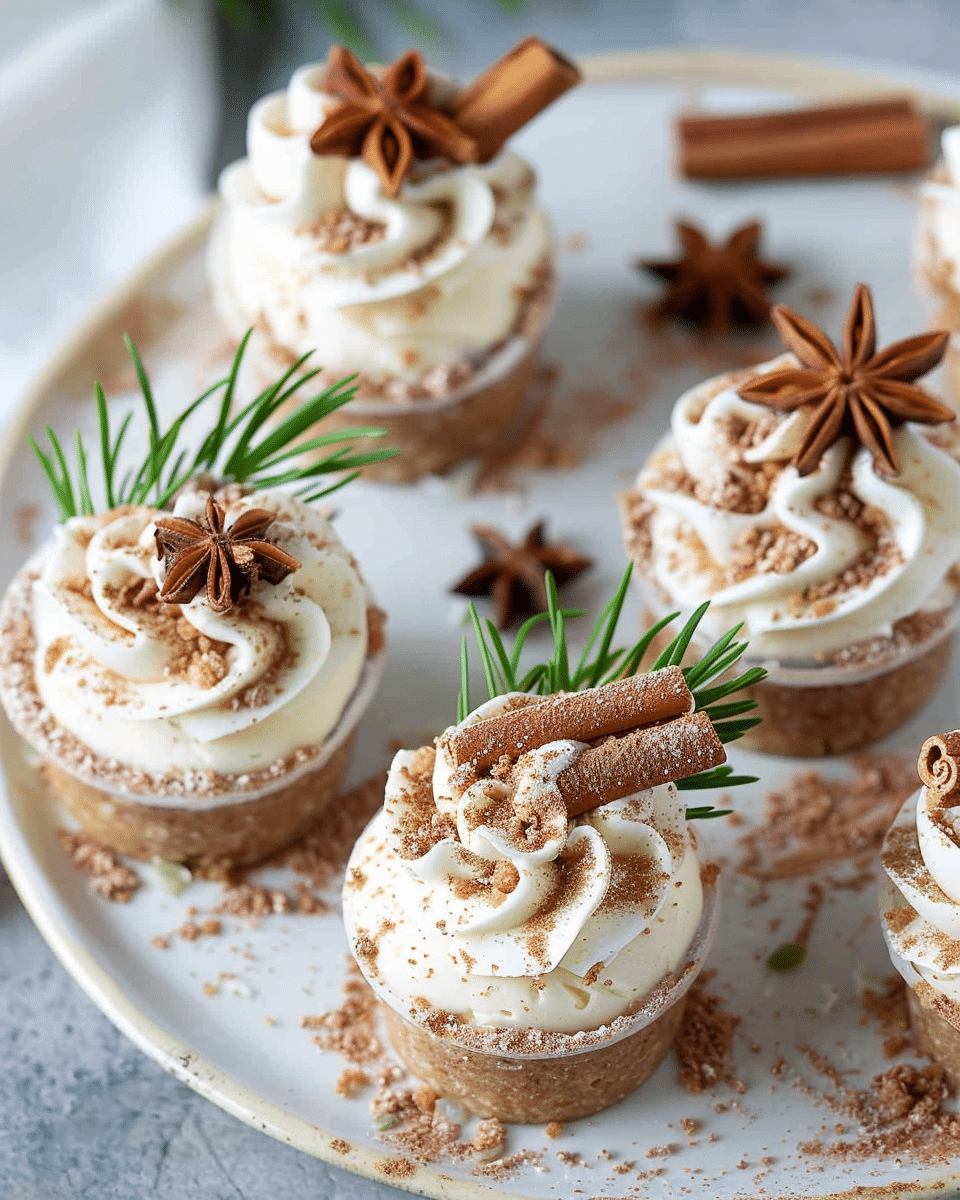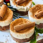 When I want a stronger holiday flavor, I swap the graham crumbs for crushed gingerbread cookies and skip the lemon zest and extra spices in the crust. I’ve also tried topping them with caramel drizzle or crushed gingersnaps for texture. To make them dairy-free, I use dairy-free cream cheese, white chocolate, and butter—still delicious with a slight adjustment in consistency.