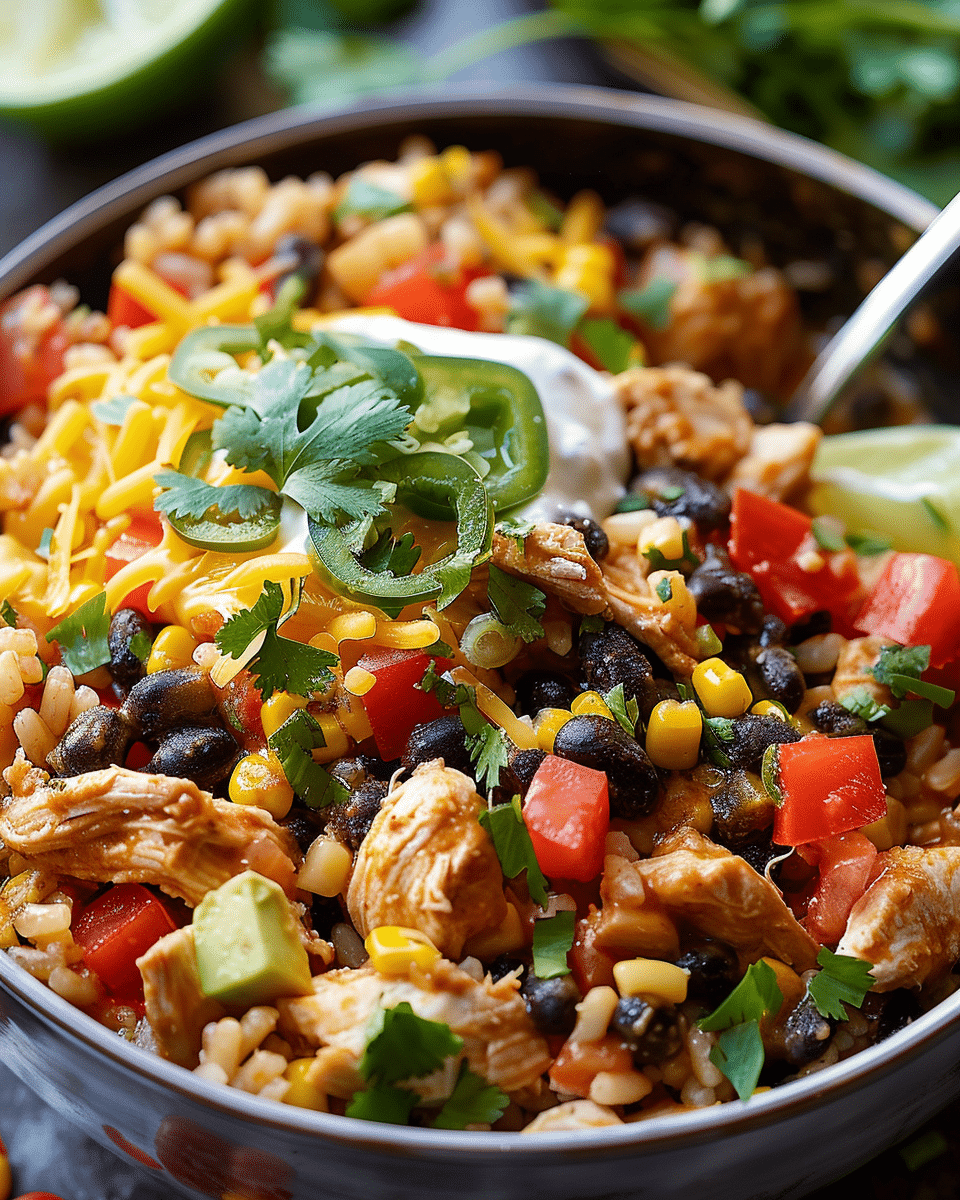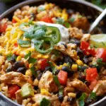 A hearty mix of chicken, rice, beans, and cheese cooked in one pan—this easy burrito bowl is flavorful, filling, and perfect for family dinners.