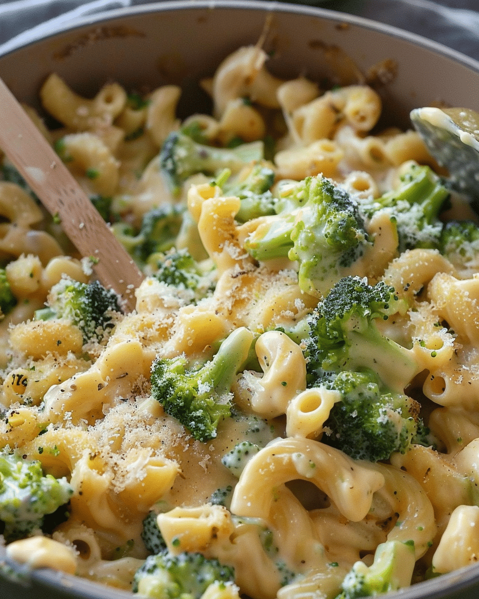 Stir in chopped broccoli and cook for another 2–3 minutes, until pasta and broccoli are tender.