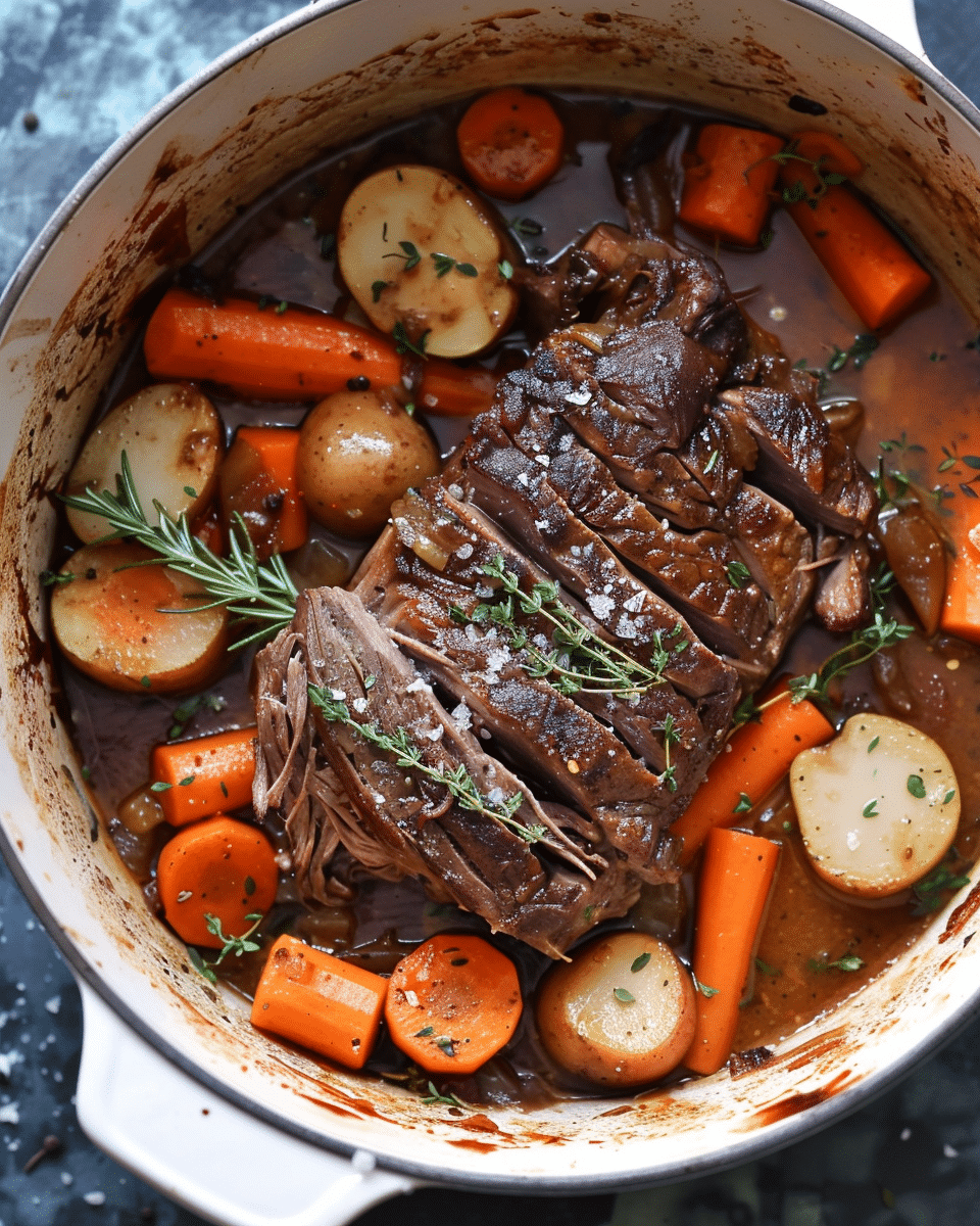 I love how effortless this pot roast is. With just a bit of prep in the morning (and maybe a quick sear for extra flavor), I come home to a roast that’s buttery soft and filled with deep, meaty flavor. It’s the kind of recipe I rely on for family dinners or when I want something classic and soul-warming. Plus, the leftovers are just as good the next day—if not better.