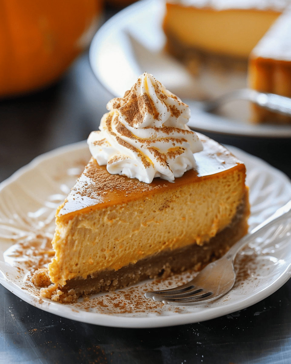This creamy pumpkin cheesecake blends the cozy flavor of pumpkin pie with the rich texture of cheesecake—no water bath needed!