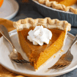 I store pumpkin pie covered in the refrigerator for up to 4 days. It also freezes well—I wrap it tightly in plastic and foil and freeze for up to 2 months. To serve, I thaw overnight in the fridge. I prefer to eat pumpkin pie chilled or at room temperature, but it can also be gently warmed if desired.