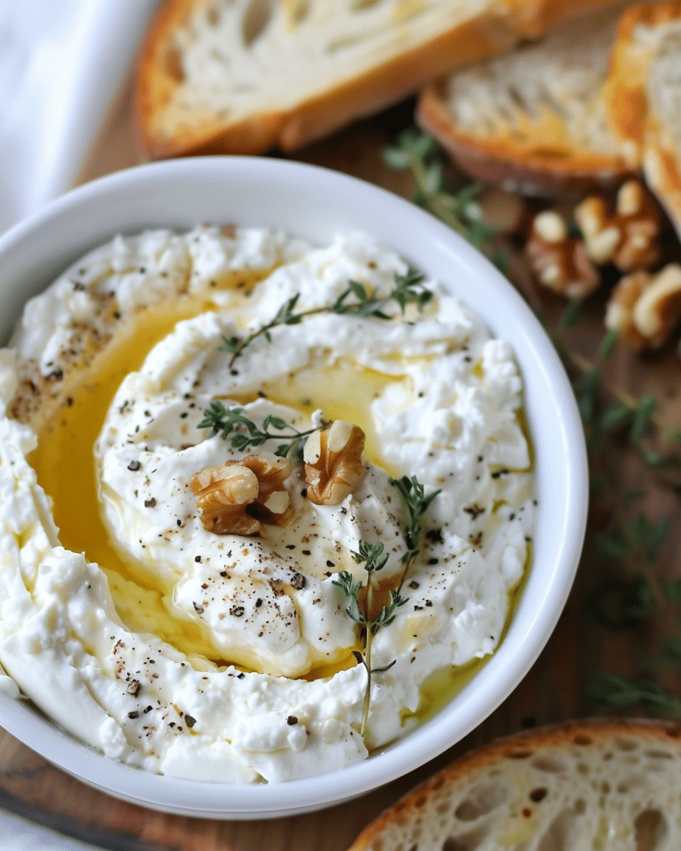 I keep leftovers covered in the fridge for up to 2 days. The dip thickens as it chills, which actually makes it even better. I stir it before serving, and if I want to freshen it up, I just add a little drizzle of honey and a few extra thyme leaves. This isn’t a dip I heat—it’s meant to be served chilled or at room temp.