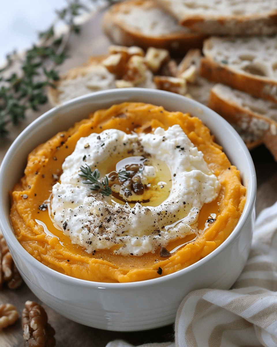 Whipped Feta: Approx. 8 oz block of feta cheese (drained from brine) 1/4 cup plain Greek yogurt (use full-fat for best flavor) 1 cup canned pumpkin puree (unsweetened) 1–2 tablespoons honey (plus more for serving) 1 teaspoon dried thyme (or 2 teaspoons fresh thyme) Freshly cracked black pepper